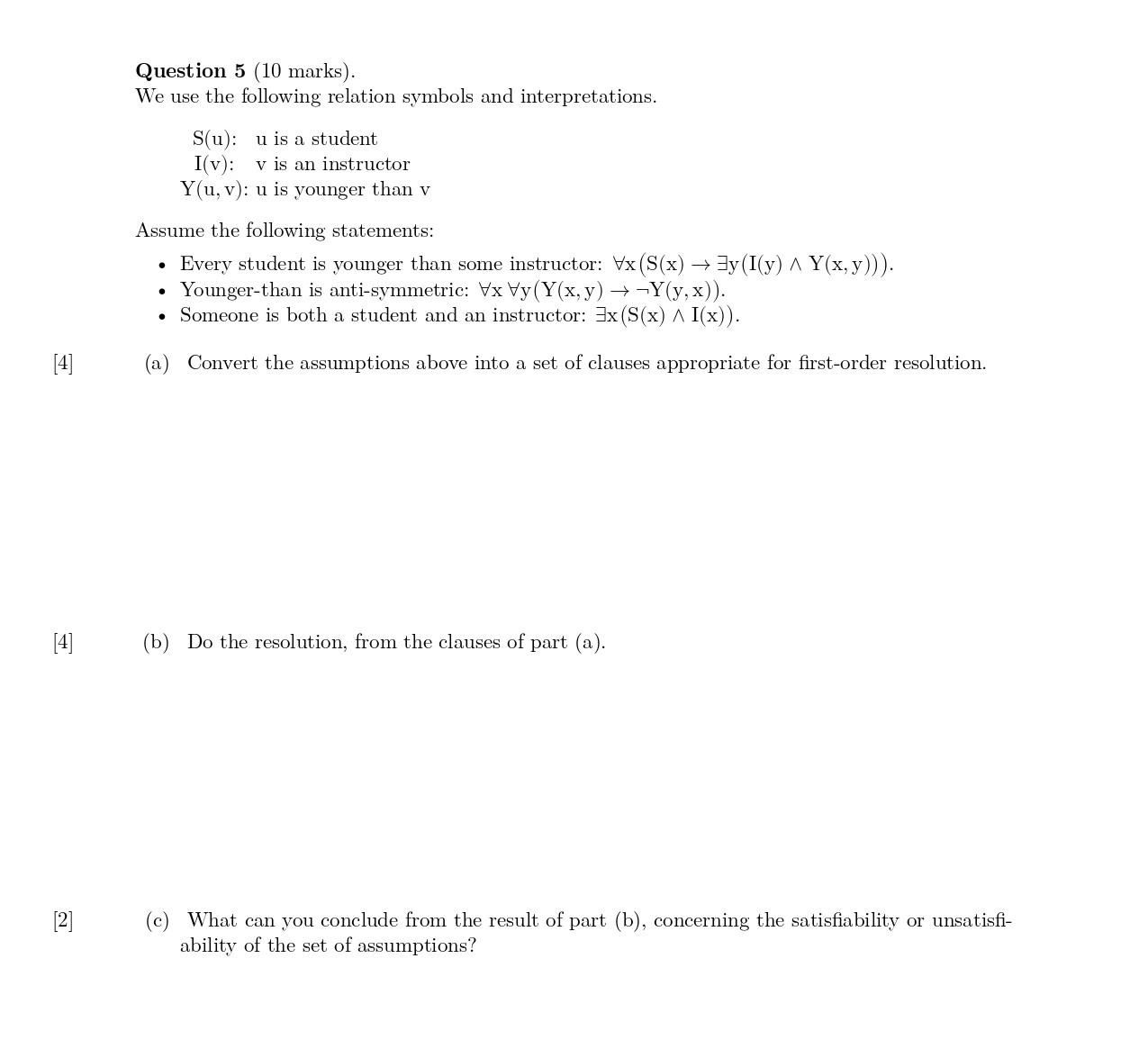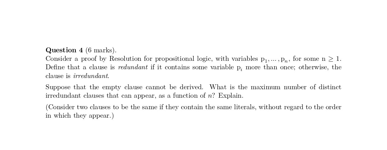 Question 4 (6 marks). Consider a proof by Resolution for propositi...