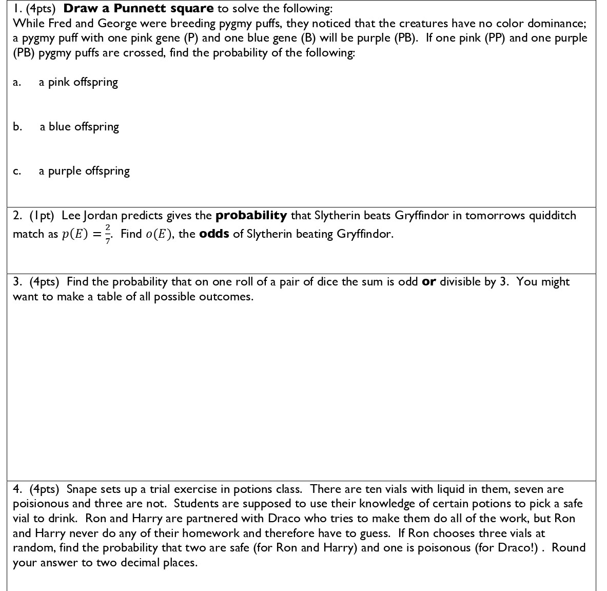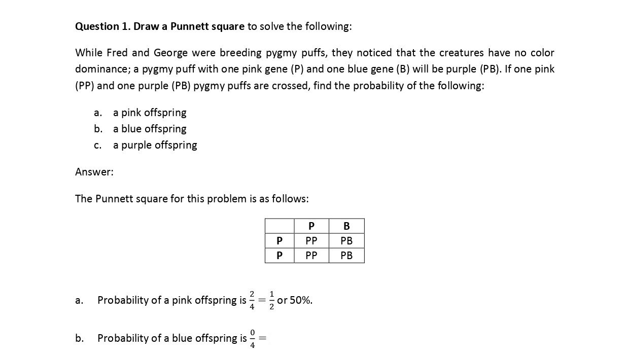 I. (4pts) Draw a Punnett square to solve the following: While Fred...