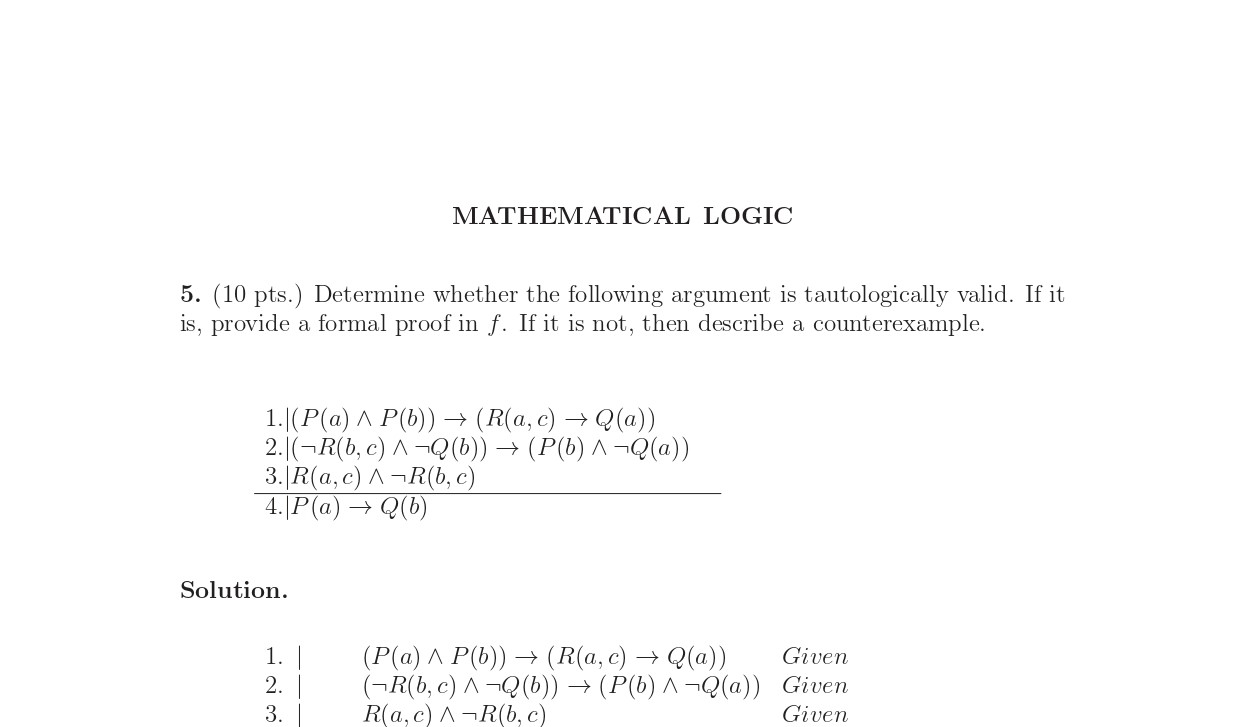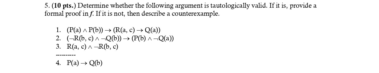 5. (10 pts.) Determine whether the following argument is tautologic...