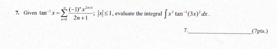 7. Given tan 2n+1 evaluate the integral Sx2 tan- 7. (7pts.)