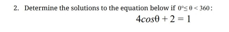 2. Determine the solutions to the equation below if 0°<0<360...
