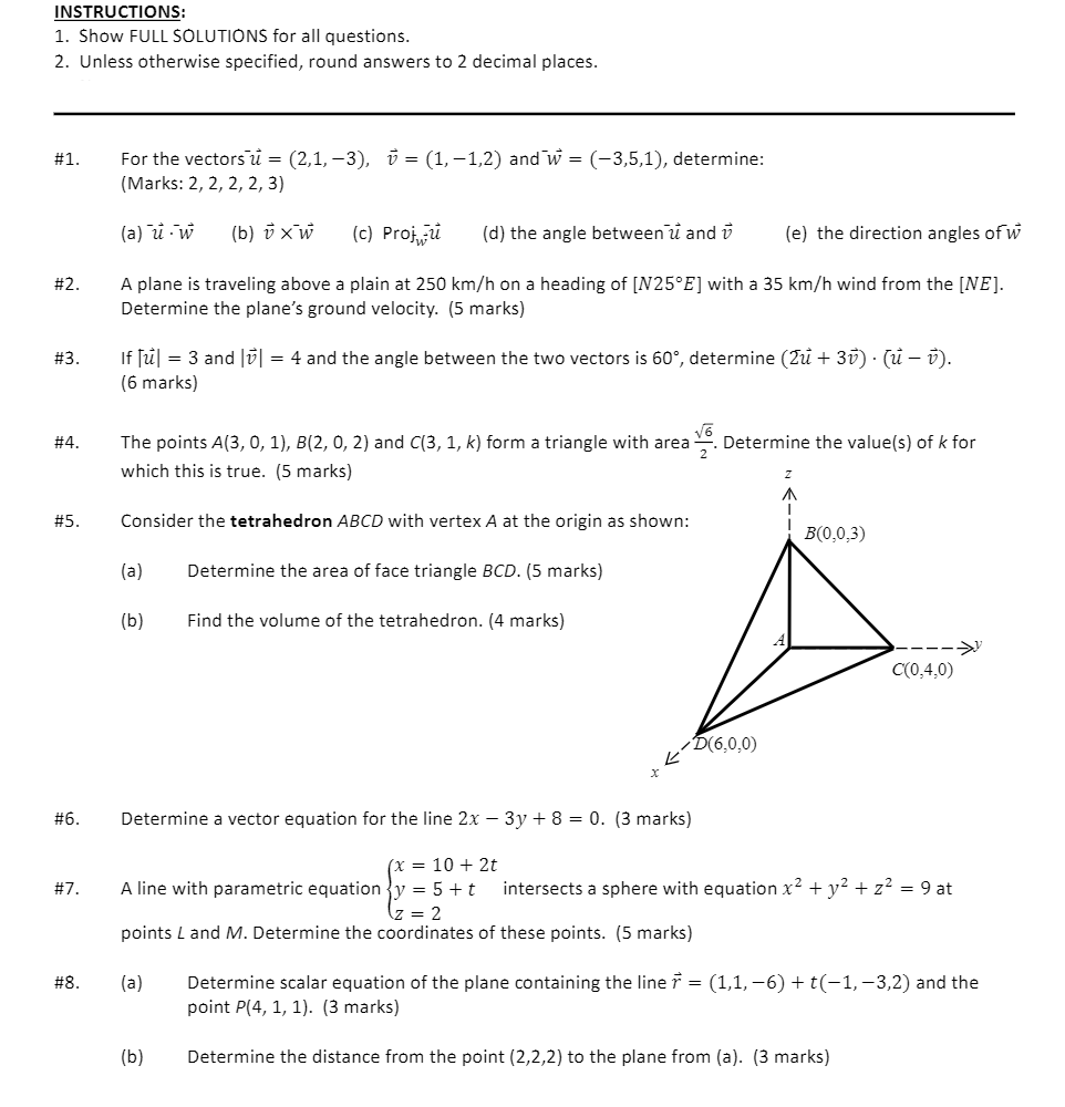 INSTRUCTIONS: 1. Show FULL SOLUTIONS for all questions. 2. Unless...