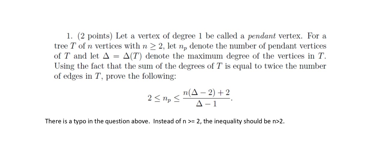 1. (2 points) Let a vertex of degree 1 be called a pendant vertex. ...