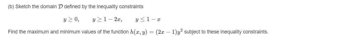 (b) Sketch the domain D defined by the inequality constraints - F...