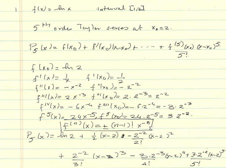 1. Consider a function f(x) = ln x. Find the fifth order Taylor pol...