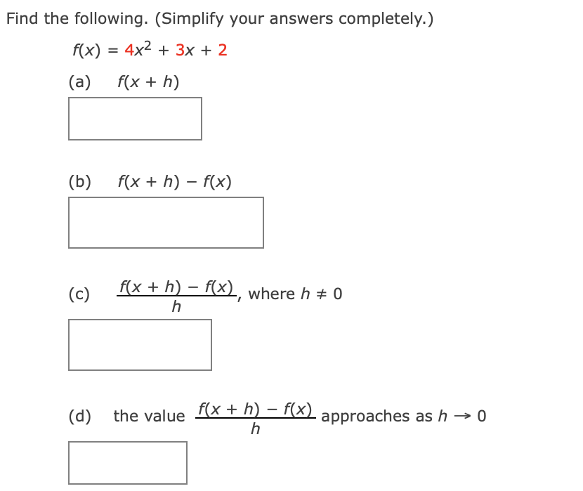 Find the following. (Simplify your answers completely.) f(x) = 4x2...
