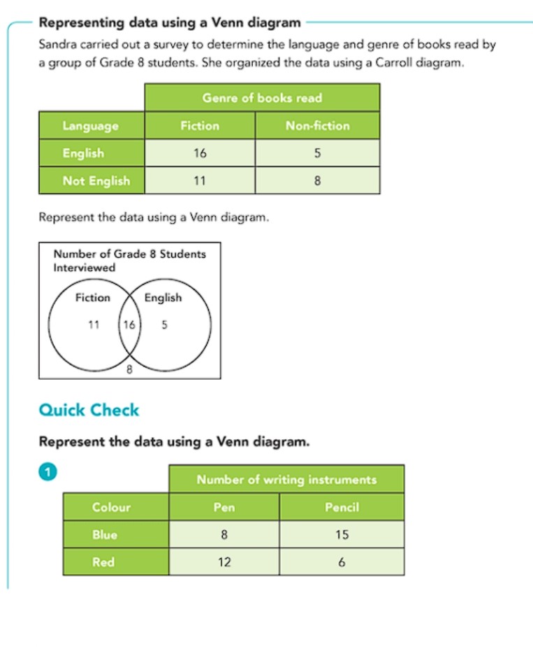 Representing data using a Venn diagram Sandra carried out a survey...
