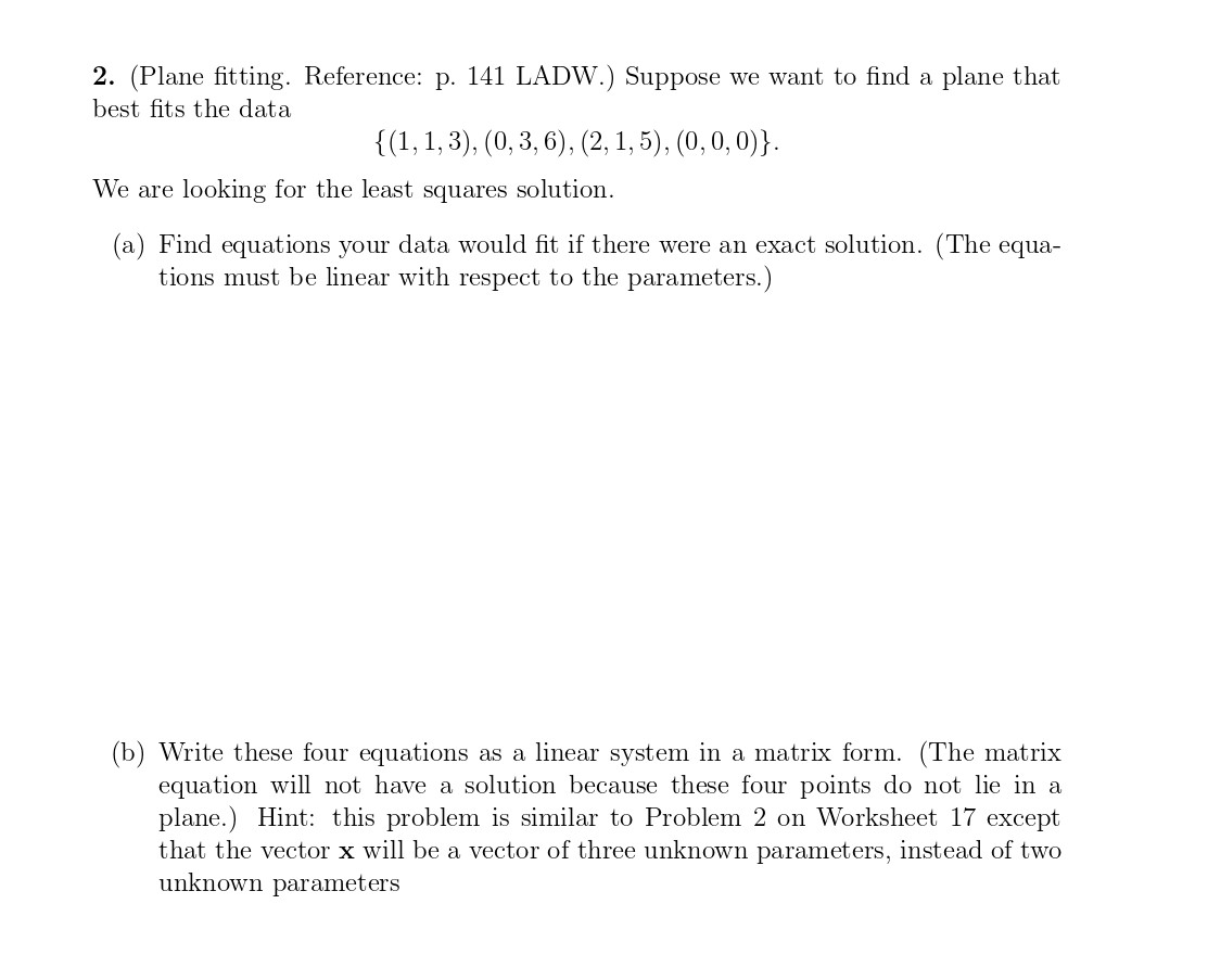 2. (Plane fitting. Reference: p. 141 LADW.) Suppose we want to find...