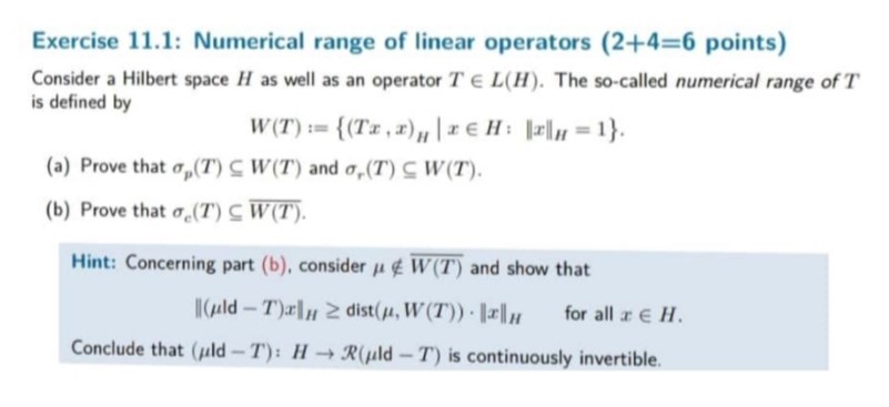 Exercise 11.1: Numerical range of linear operators (2+4=6 points)...