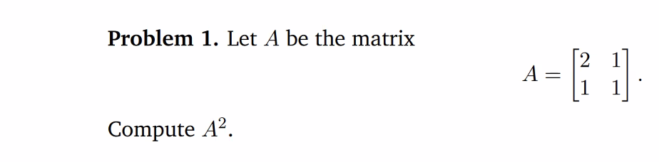 Problem 1. Let A be the matrix 2 A Compute A².