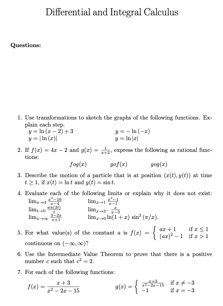 Differential and Integral Calculus Questions: 1. Use transformati...