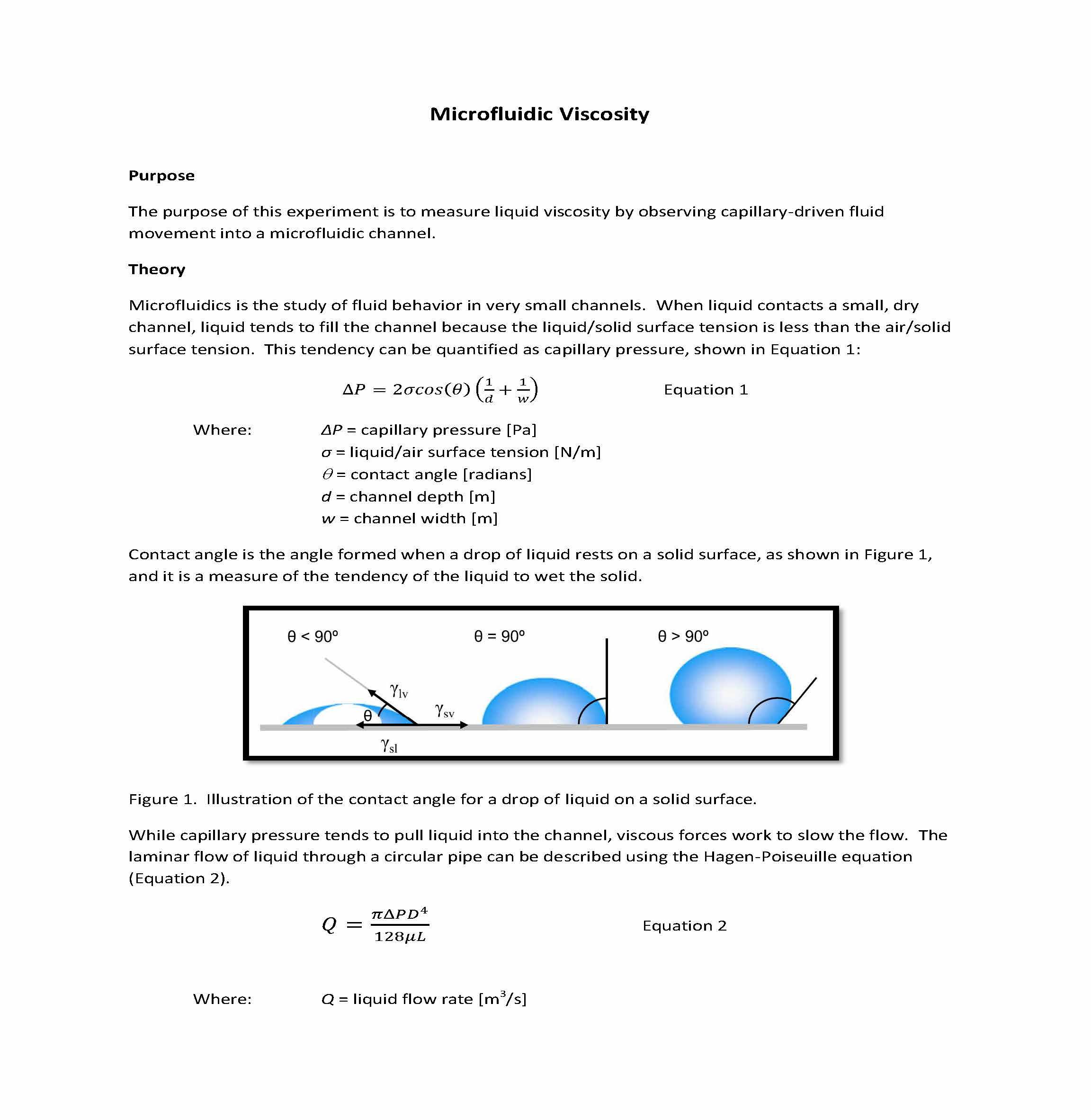 Microfluidic Viscosity Purpose The purpose of this experiment is...
