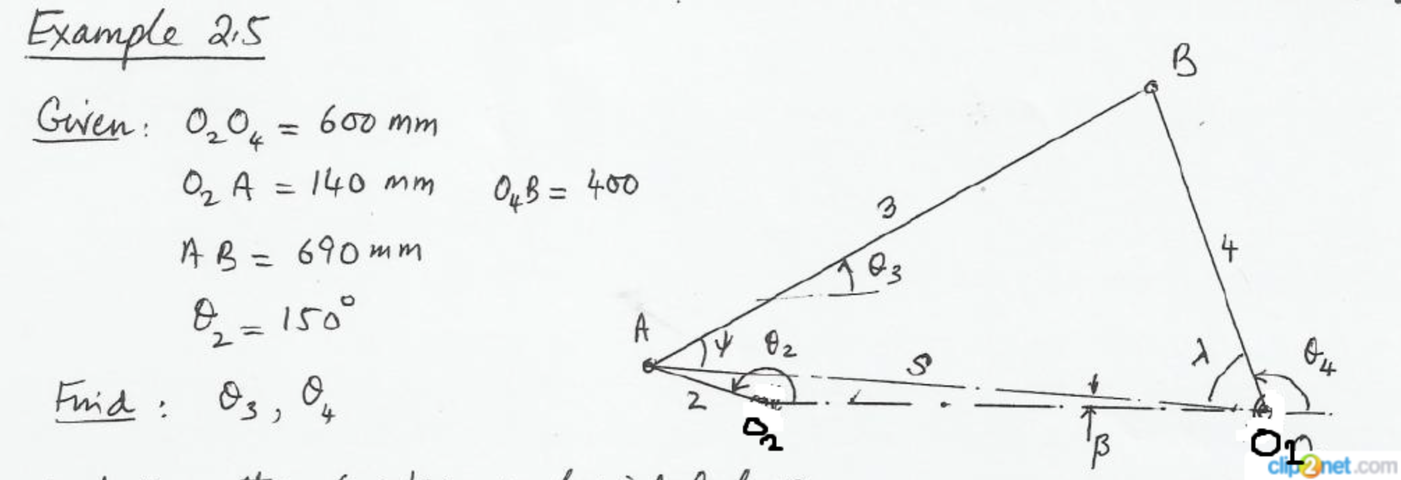 Example 2.5 B Given: O2O4 = 600 mm O2A = 140 mm 04B=400 = 3 4...