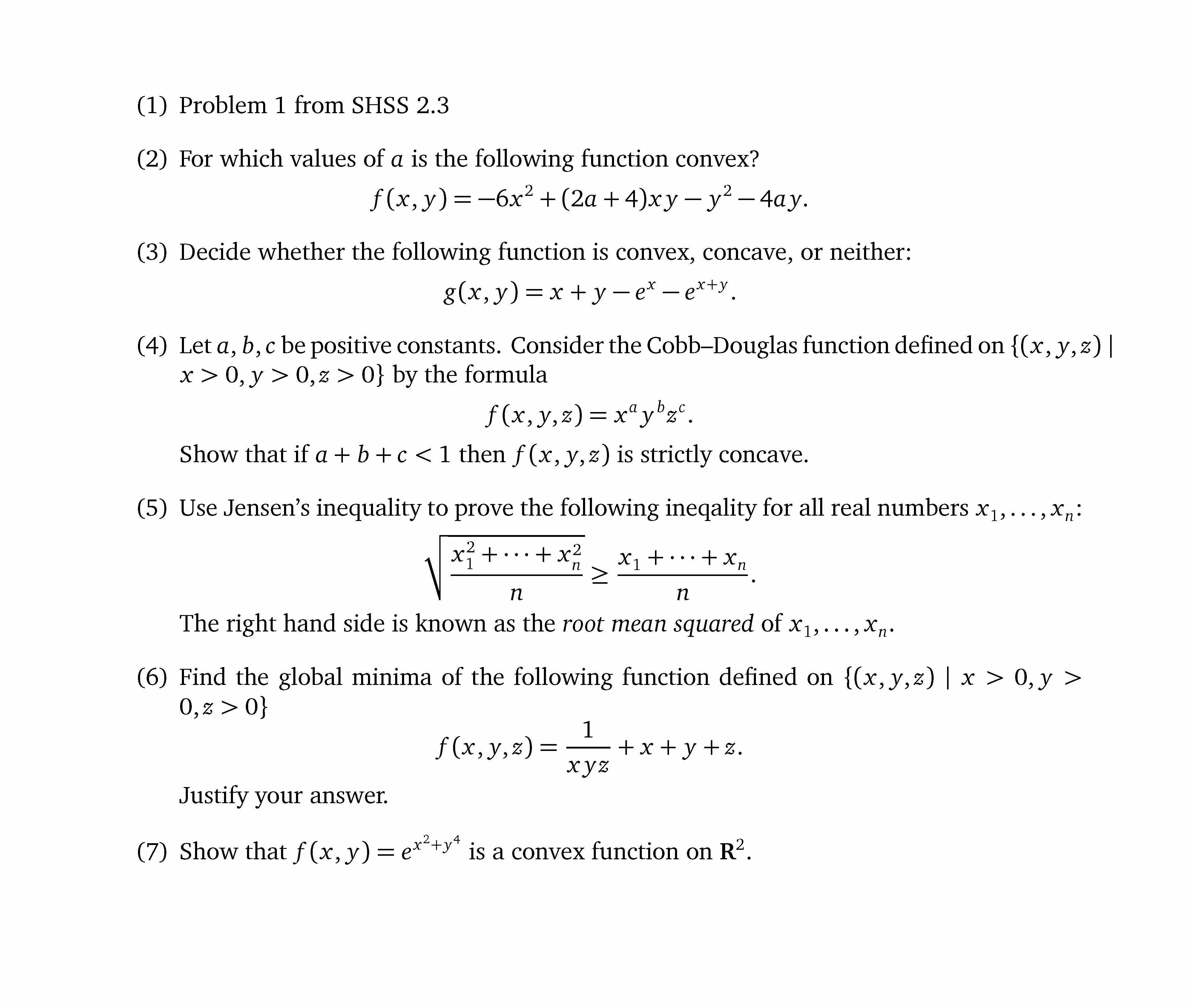 (1) Problem 1 from SHSS 2.3 (2) For which values of a is the follo...