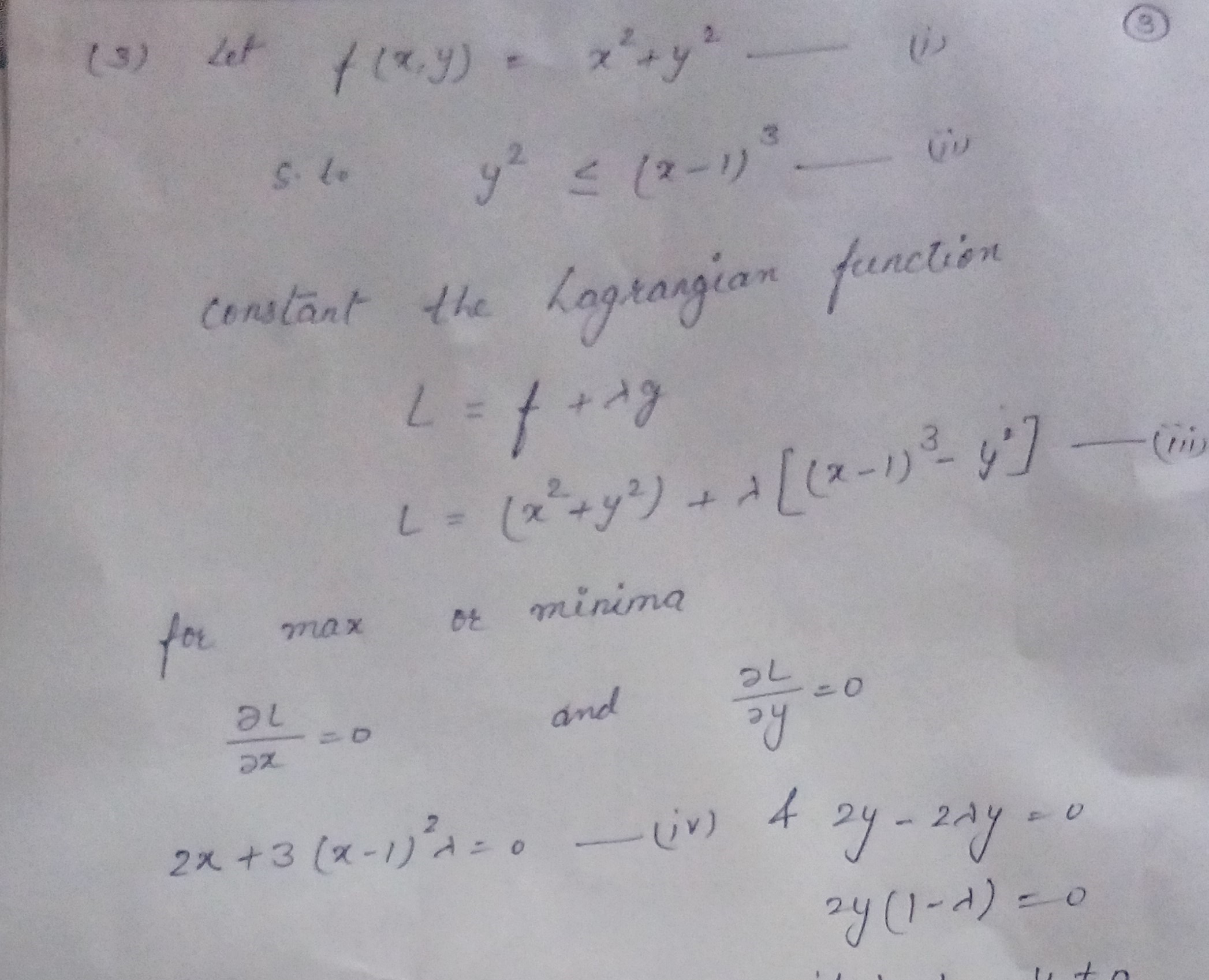 (3) Minimize x2 + y² subject to y2 (x-1)³. - Does a Lagrang...