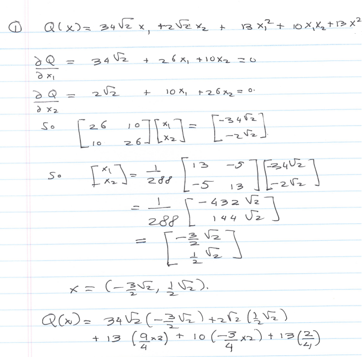 1. Find all optimal solutions to min Q(x) = 34√2x₠+ 2√2x₂...