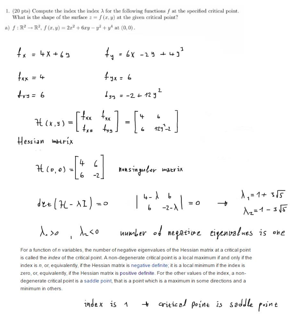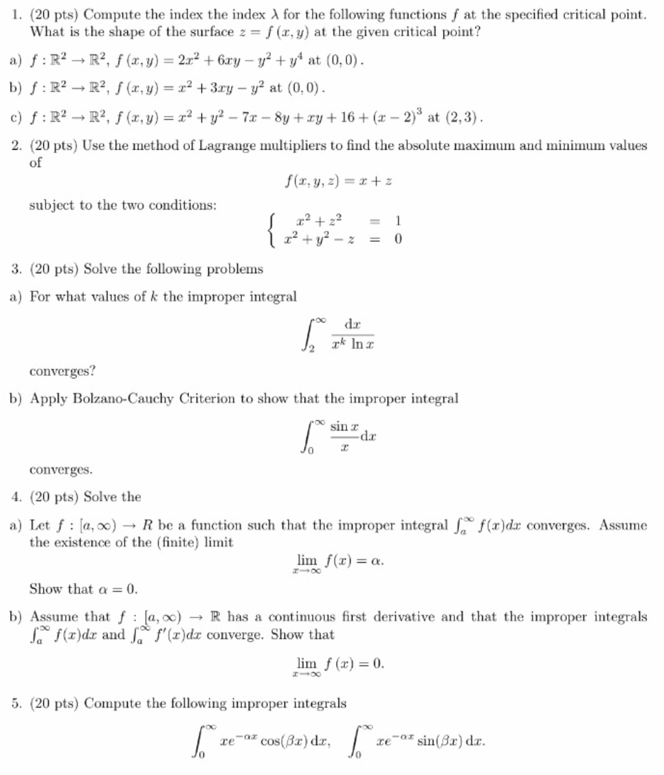 1. (20 pts) Compute the index the index X for the following functio...