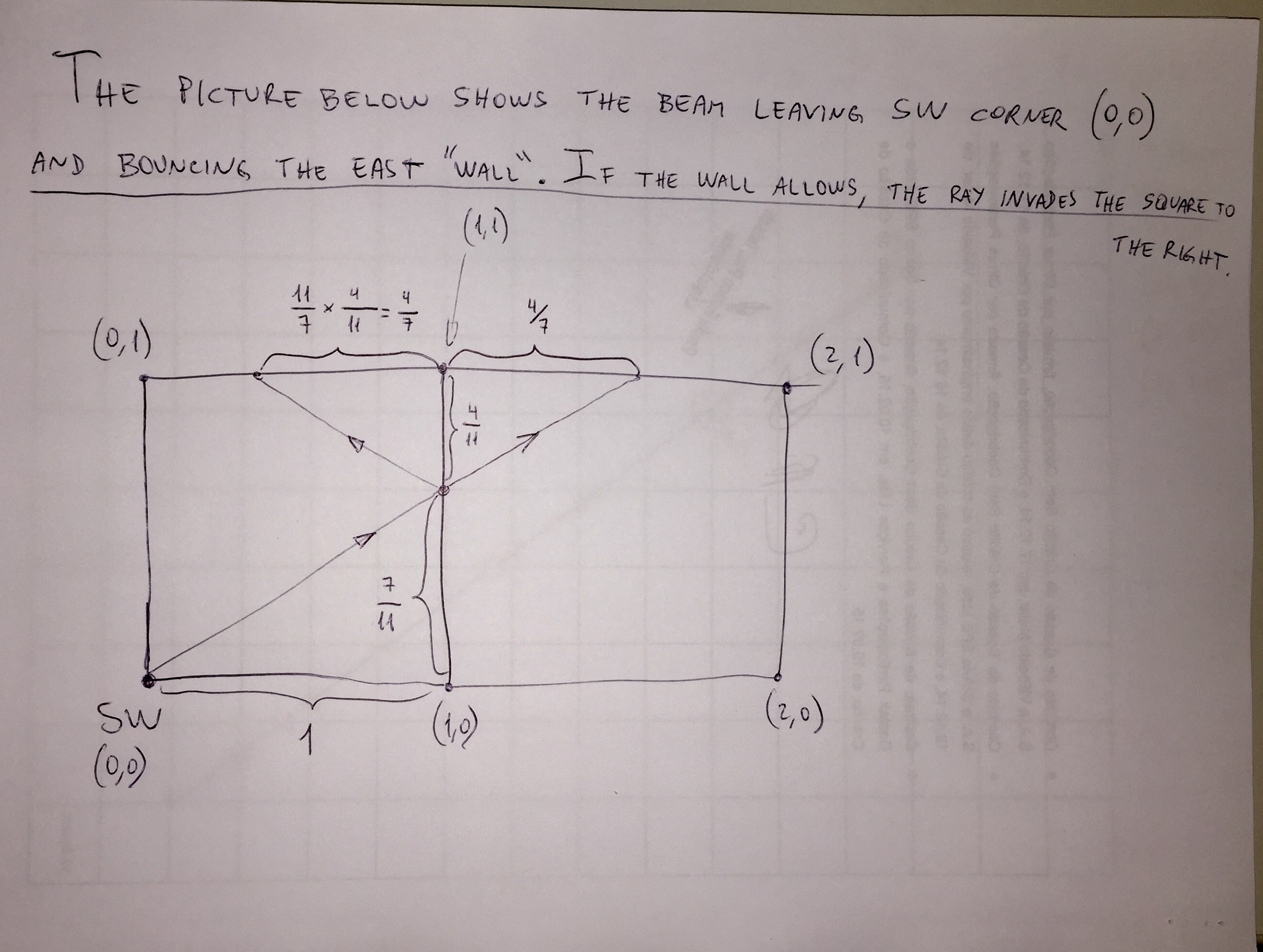 Imagine a laser beam that starts at the southwest corner of a squar...