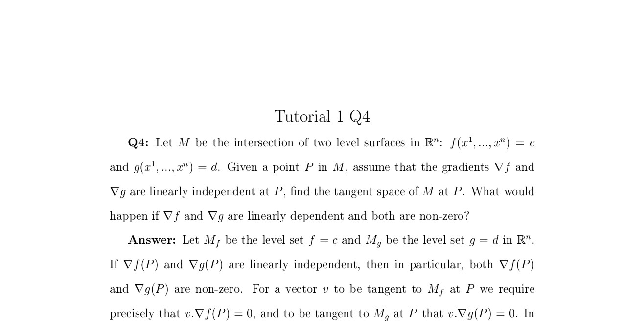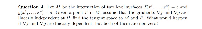Question 4. Let M be the intersection of two level surfaces f(x1,.....