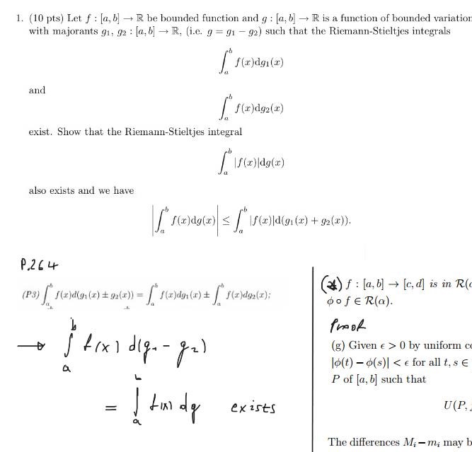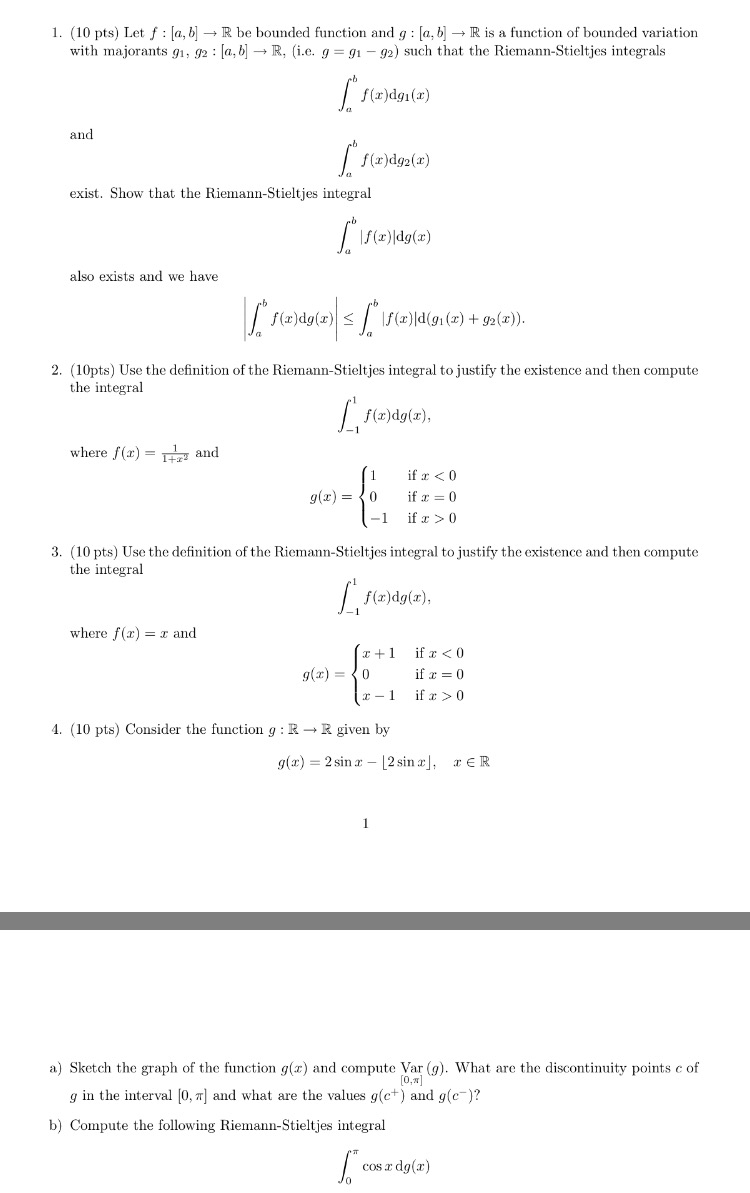 1. (10 pts) Let f : (a.b) - R be bounded function and g : [a, b) - ...