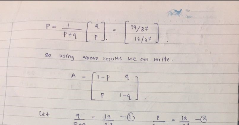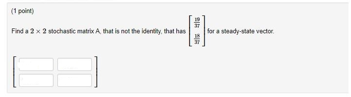 (1 point) 19 37 Find a 2 X 2 stochastic matrix A, that is not th...