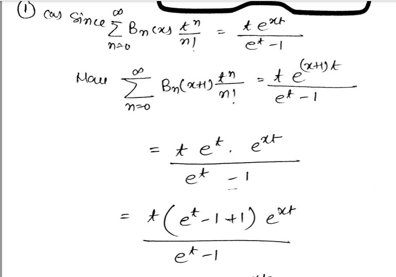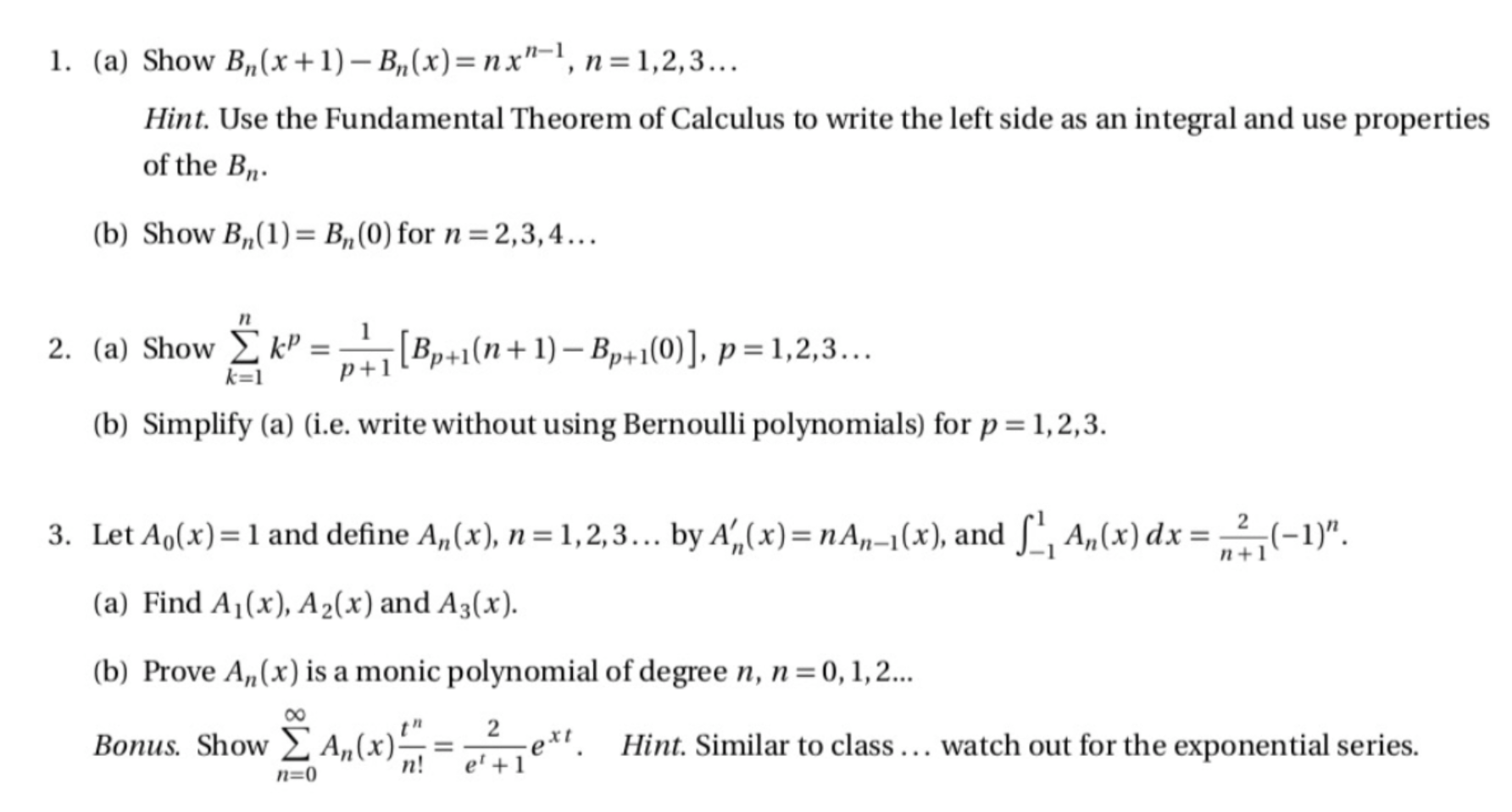 1. (a) Show Bn(x+1)-Bn(x)=nx"-1,n=1,2,3 - Hint. Use the Funda...