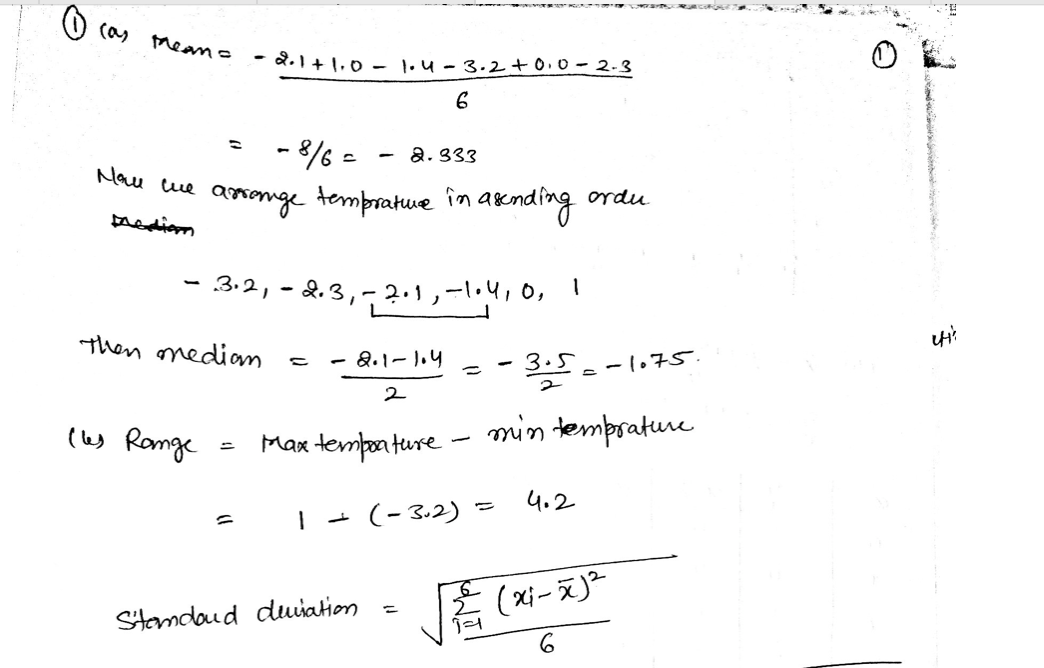 1. A sample of 6 temperatures in °C were recorded as follows: -2.1...