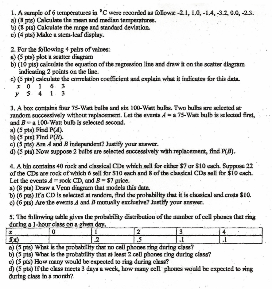 1. A sample of 6 temperatures in °C were recorded as follows: -2...