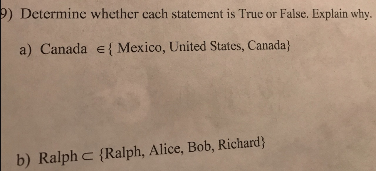 9) Determine whether each statement is True or False. Explain why....