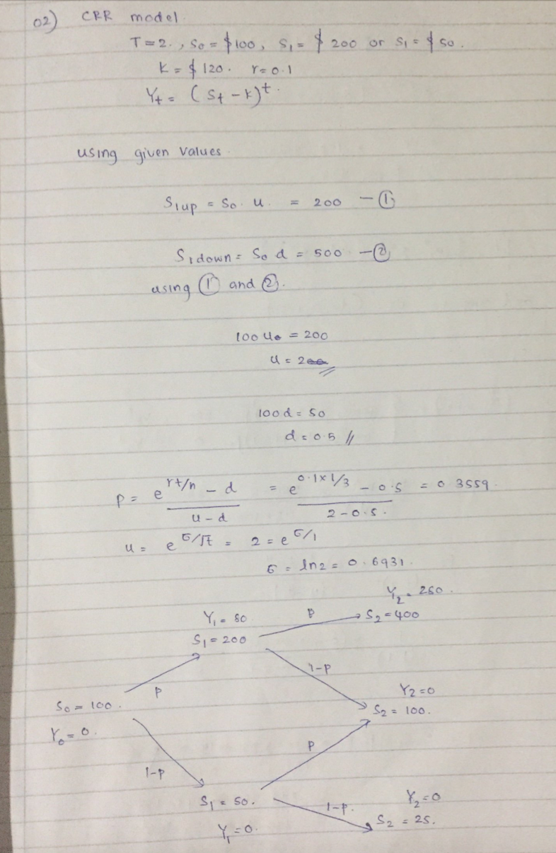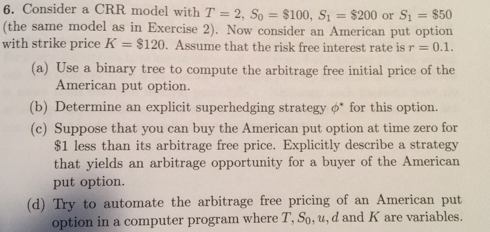 6. Consider a CRR model with T = 2, S0 = $100, S1 = $200 or S1 = $5...