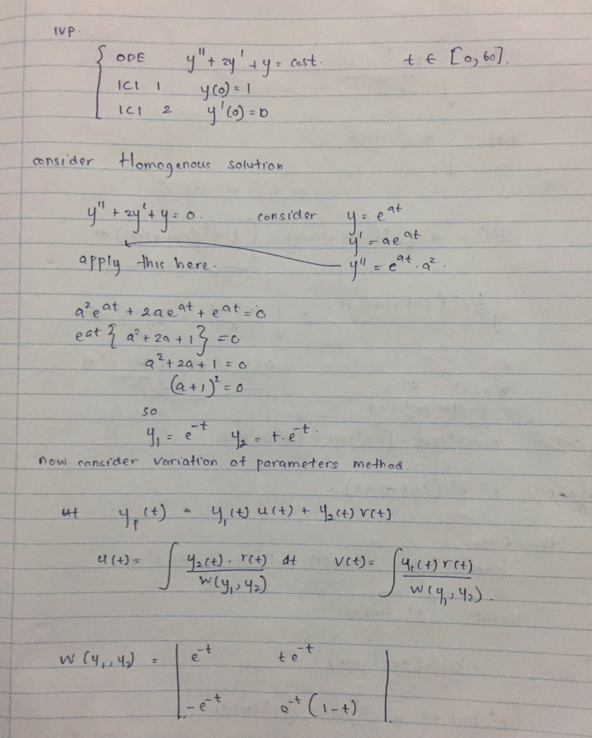 Consider the IVP ODE: y" + 2 y' + y = cost, t E [0,60] IC1:...