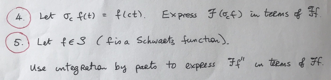4. Let Oc f(t) = flct). Express Flocf) in terms of If 5. Let fes...