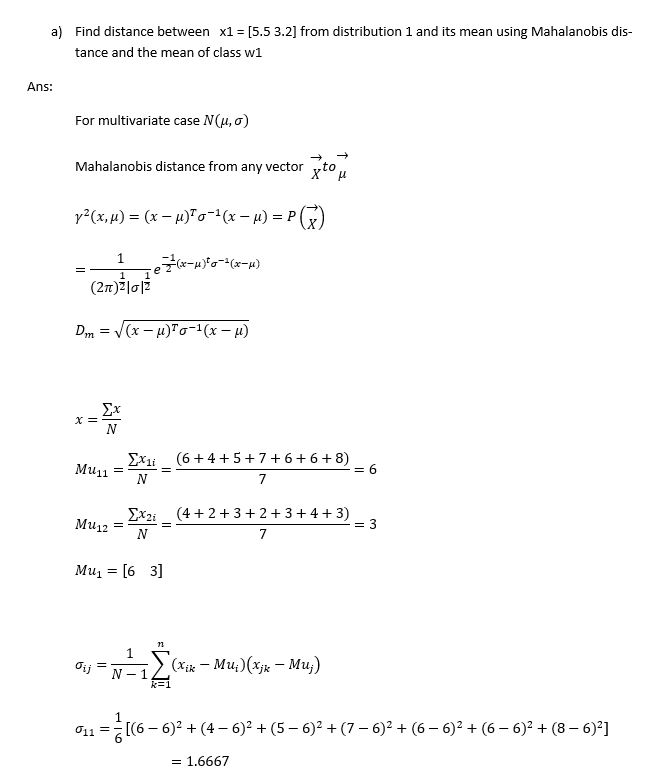 1. Assuming the covariance matrix of a given class (w1) with three...