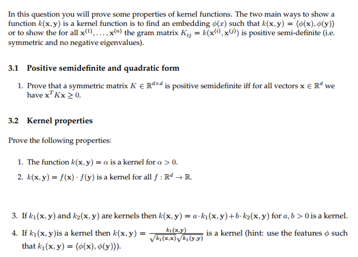 In this question you will prove some properties of kernel functions...