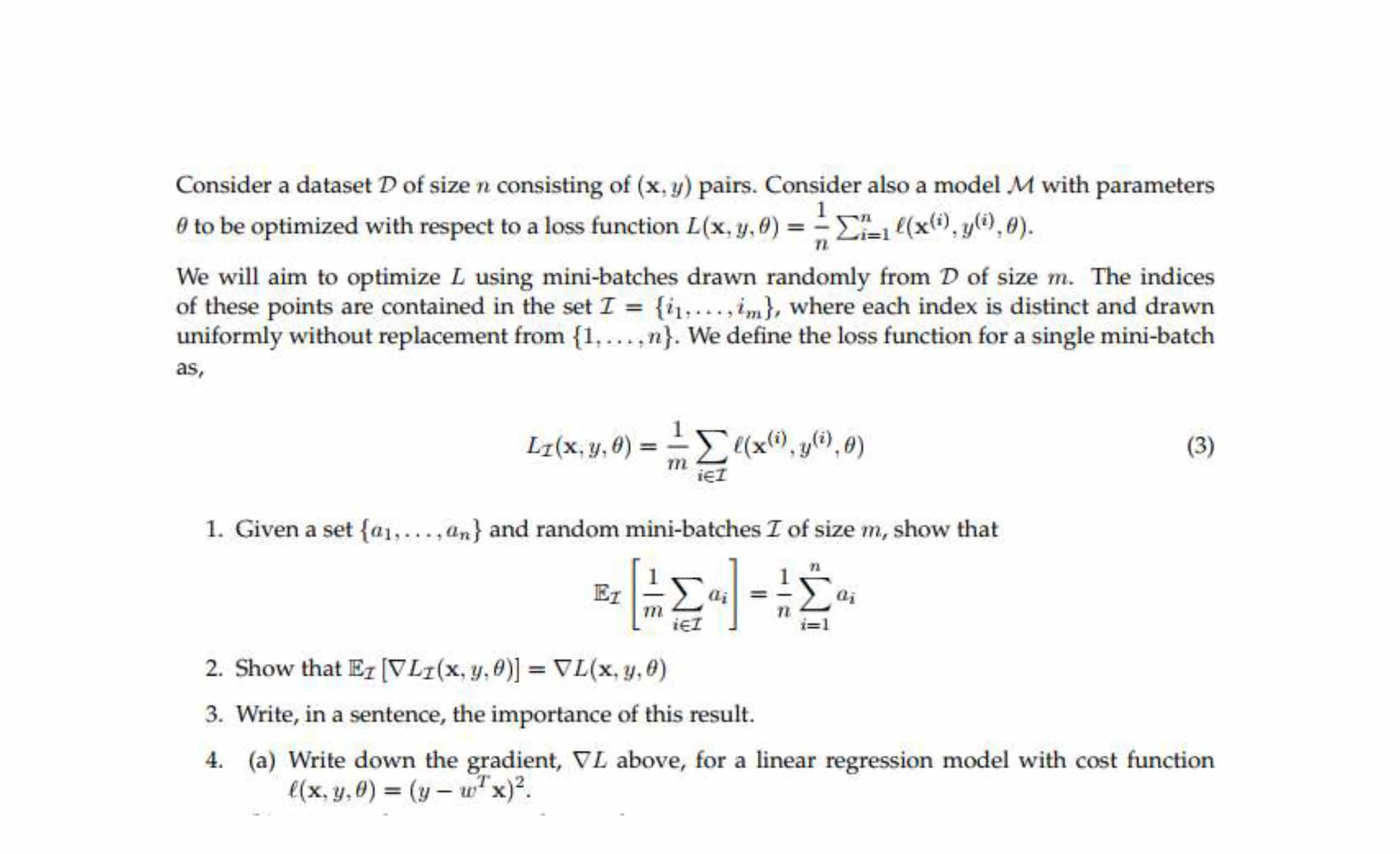 Consider a dataset D of size n consisting of (x,y) pairs. Consider ...