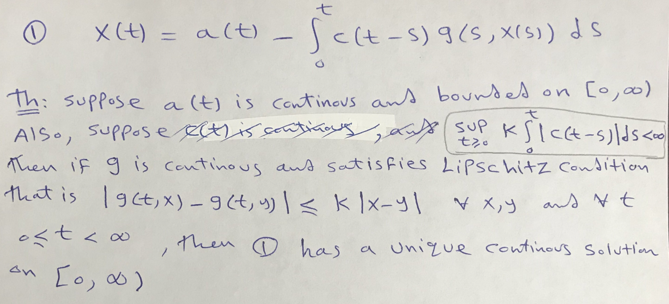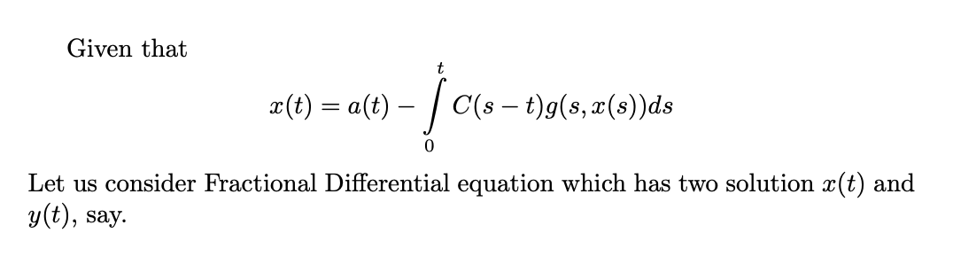 t 1 X(t) = alt) - Selt - S) gls, X(S)) ds Th: suppose a (t) is c...