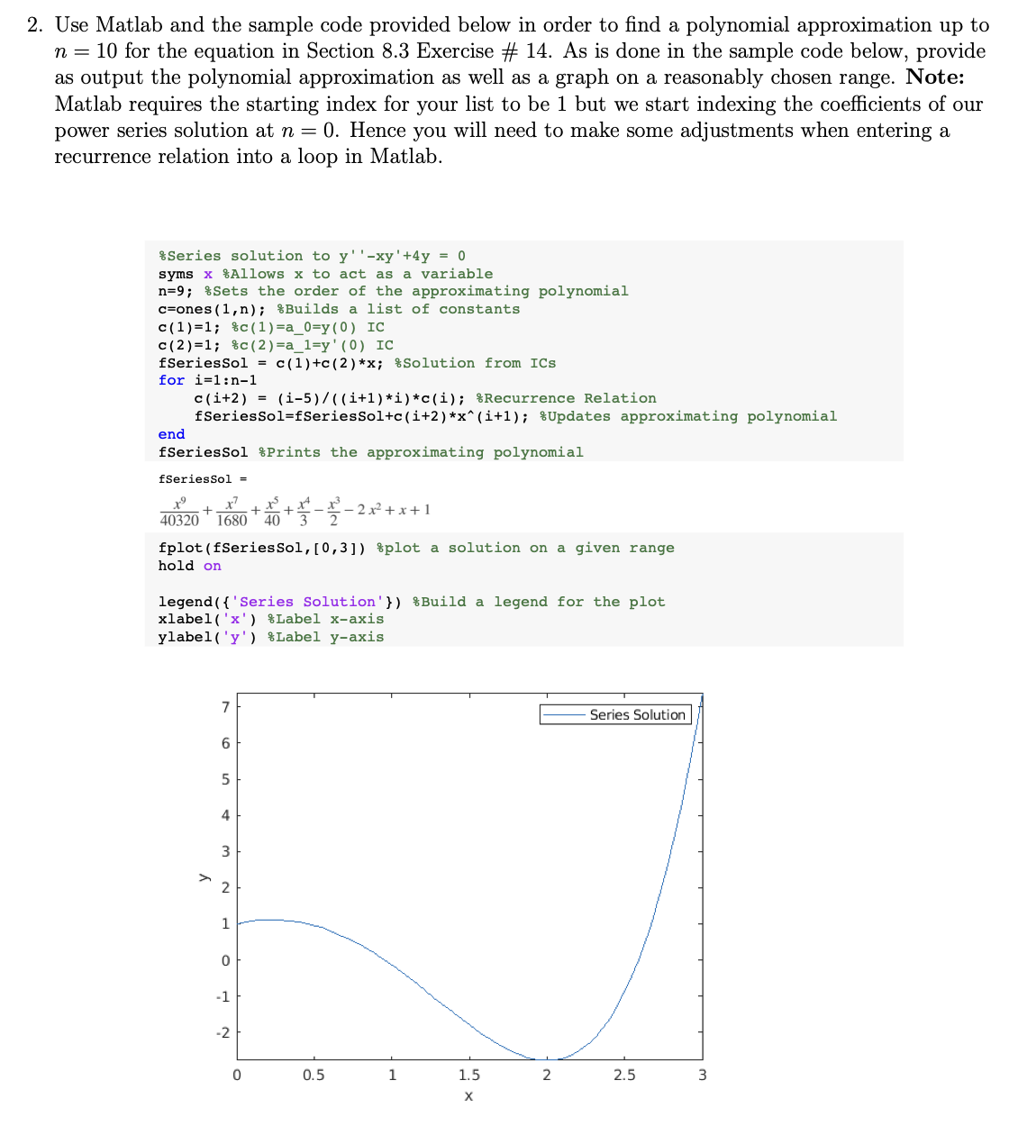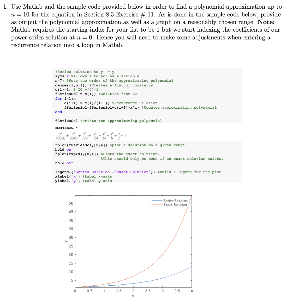 1. Use Matlab and the sample code provided below in order to find a...