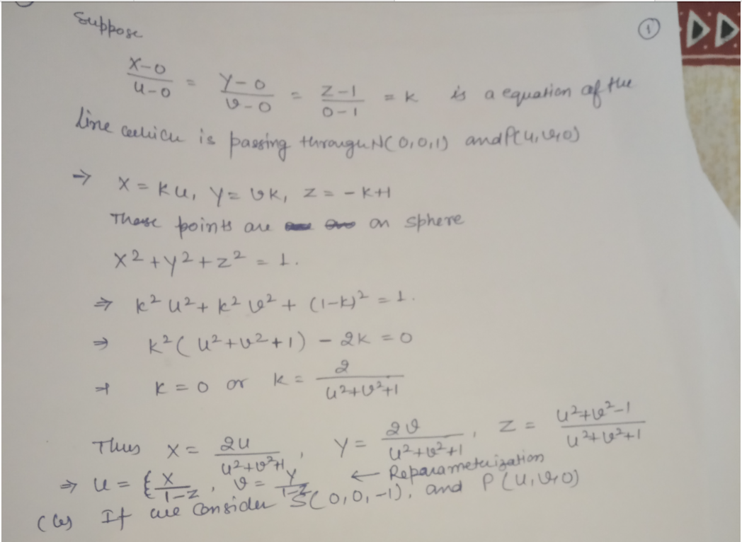 (a) Find a formula for P(u,v), the stereographic projection of the...