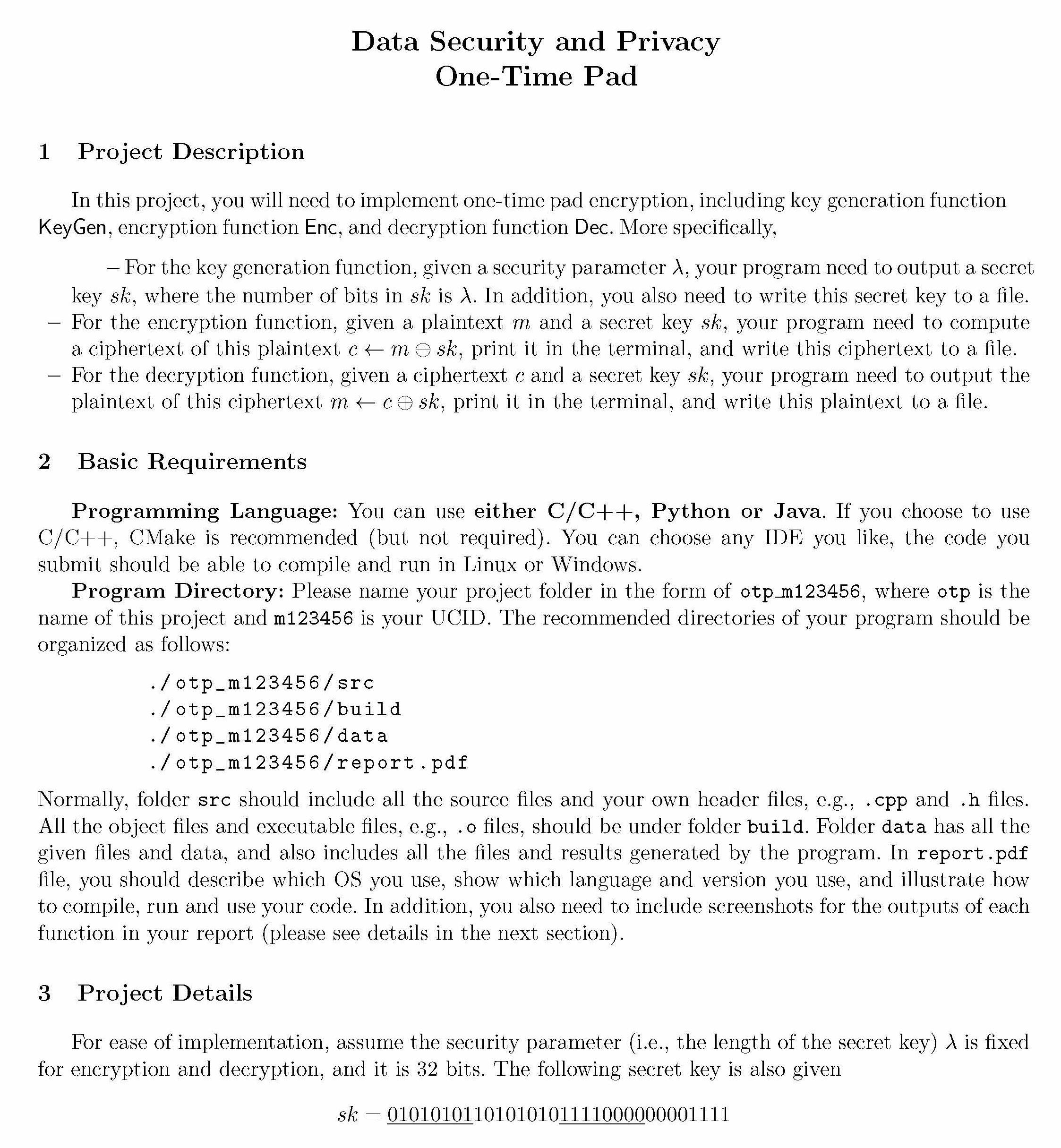 Data Security and Privacy One-Time Pad 1 Project Description In ...