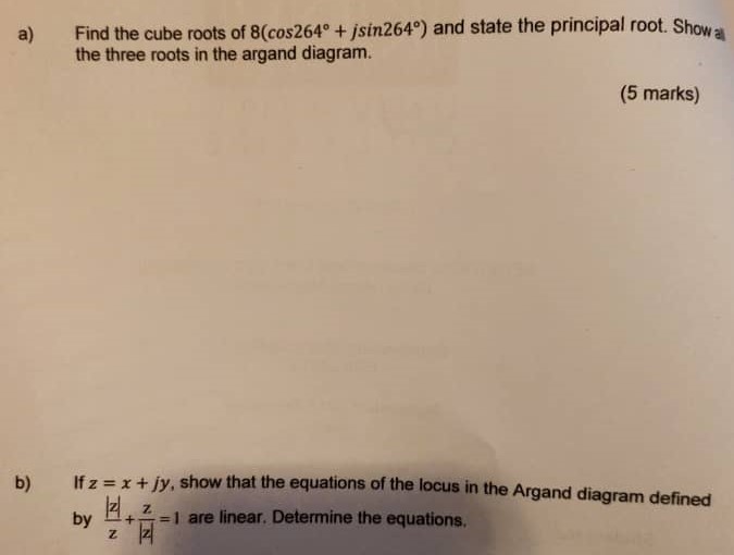 a) Find the cube roots of 8(cos264° + jsin264°) and state th...
