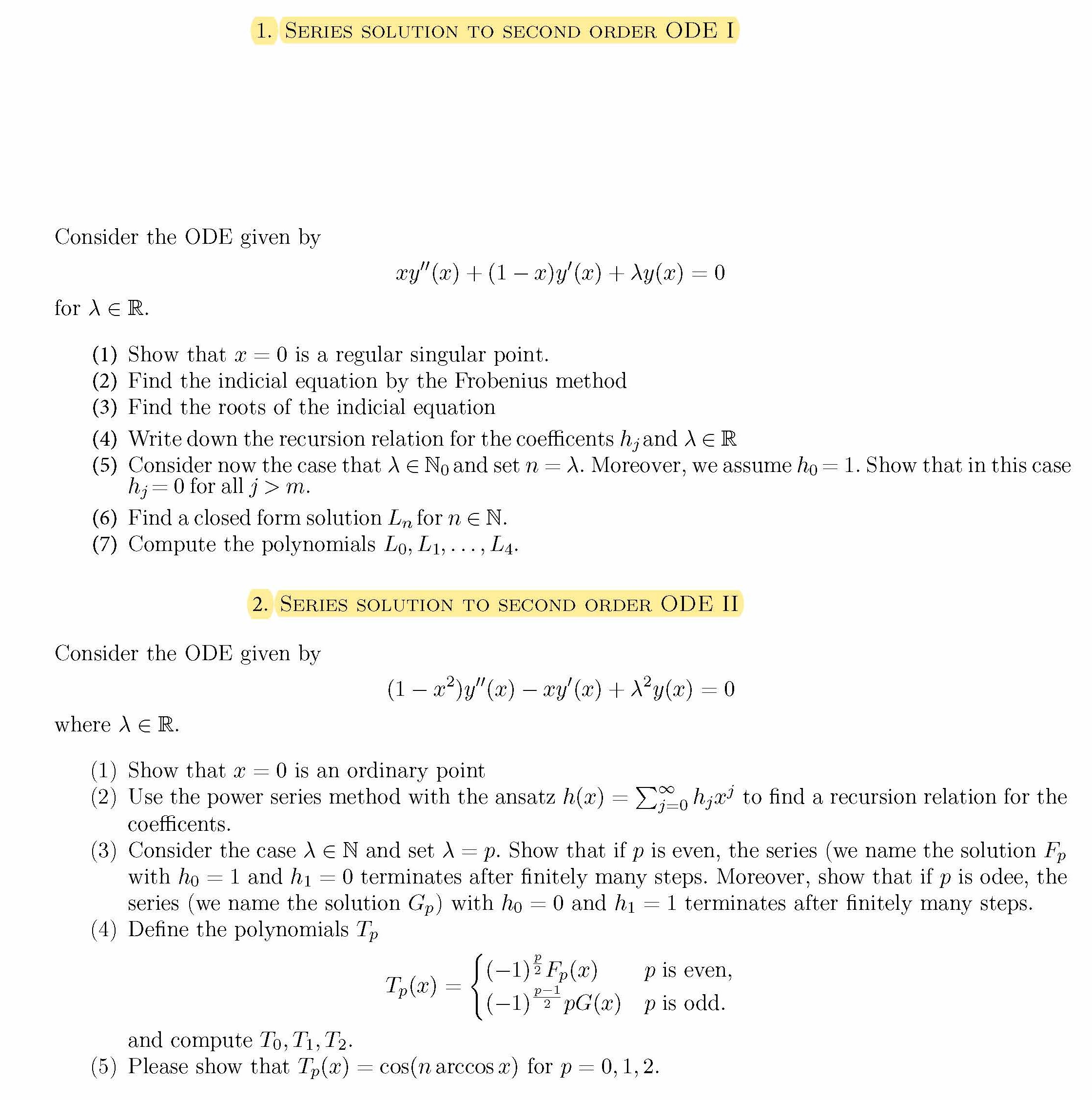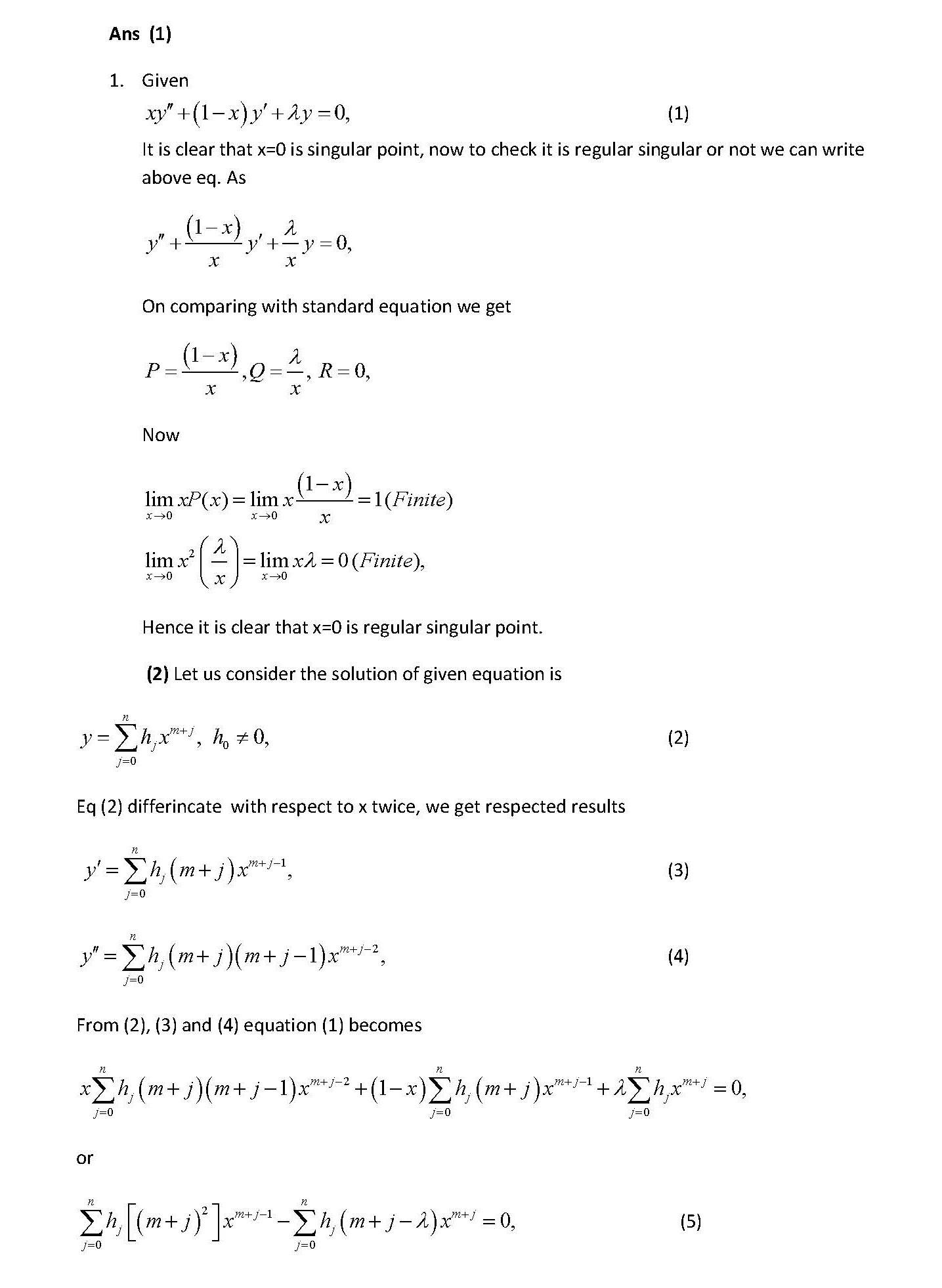 1. Series solution to second order ODE I Consider the ODE given by...