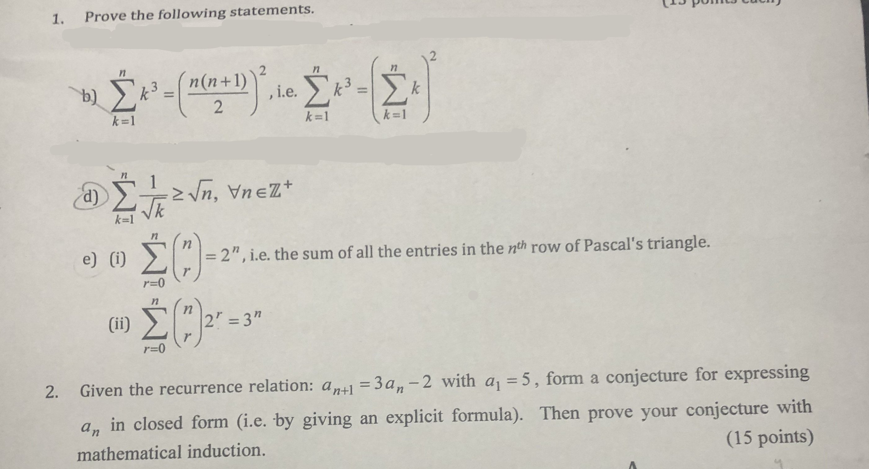 1. Prove the following statements. k=1 Ex-(Ex) k=1 d) Vn, NneZ+ ...