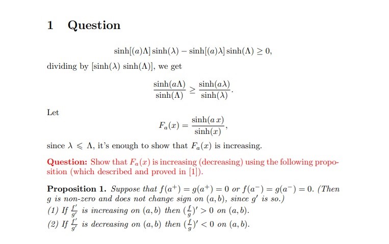 1 Question sinh[(a)A]sinh(A)-sinh[(a)X]sinh(A)0 - dividing by [si...