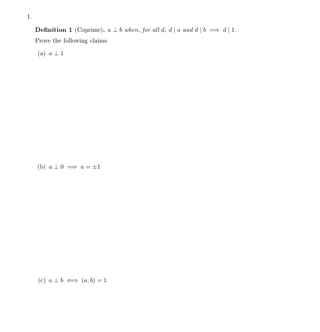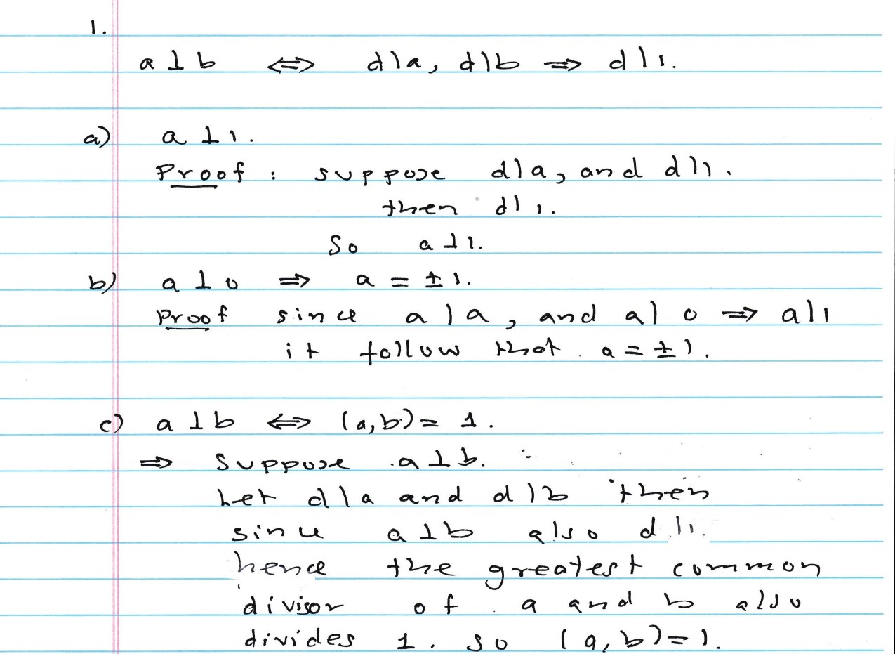 1. Definition 1 (Coprime). a 1b when, for all d. d I a and d b d ...