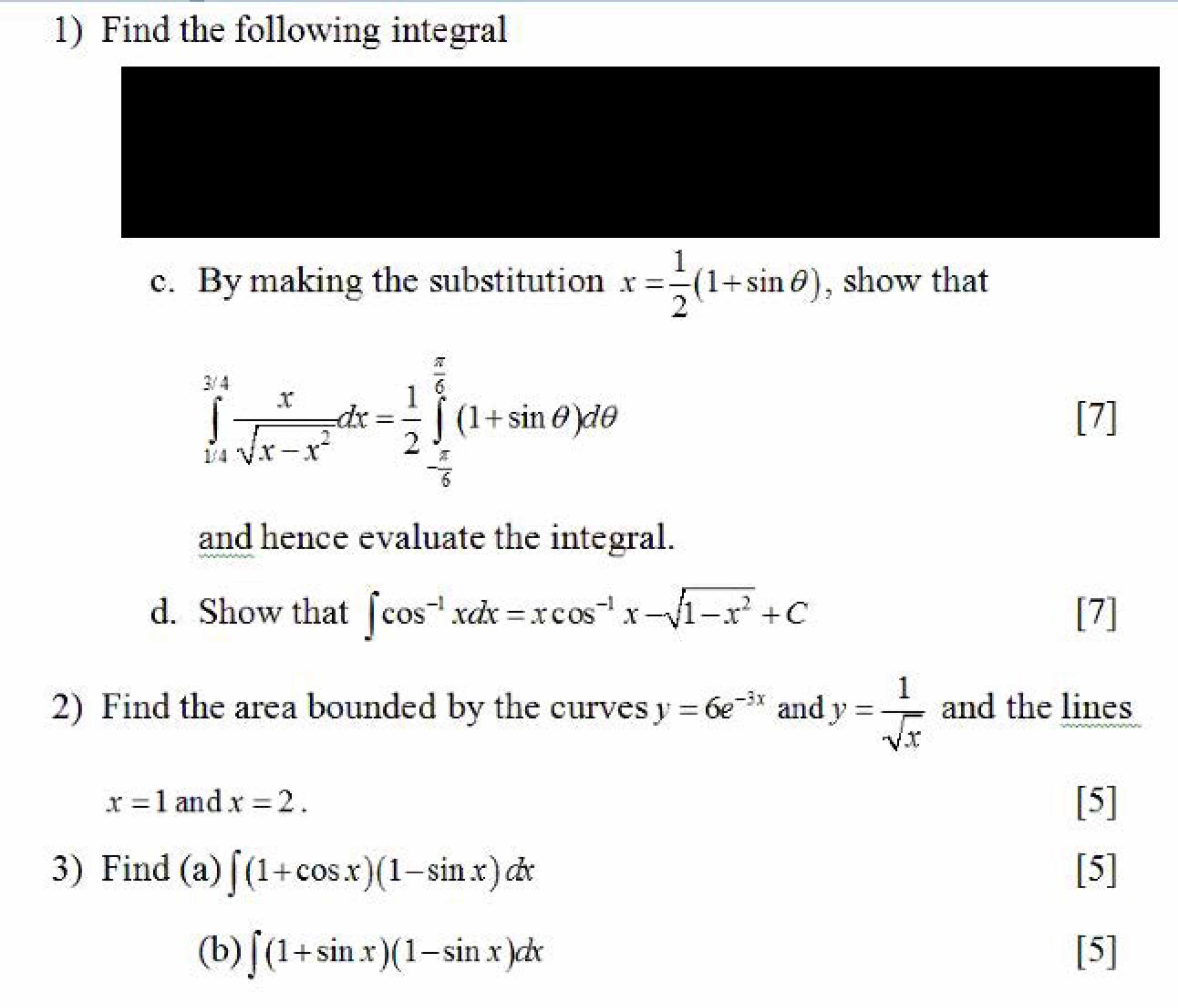 1) Find the following integral c. By making the substitution x=2(1...