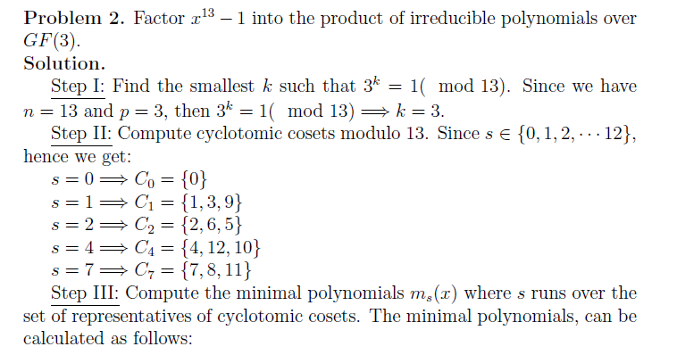 PROBLEMS 2. Factor x13 - 1 into product of irreducible polynomials...
