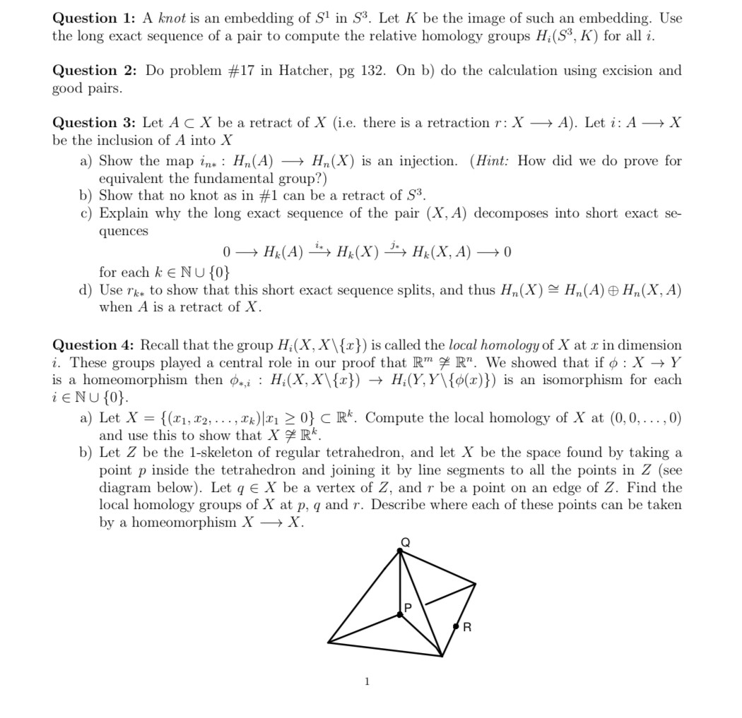 Question 1: A knot is an embedding of S1 in S3. Let K be the image...