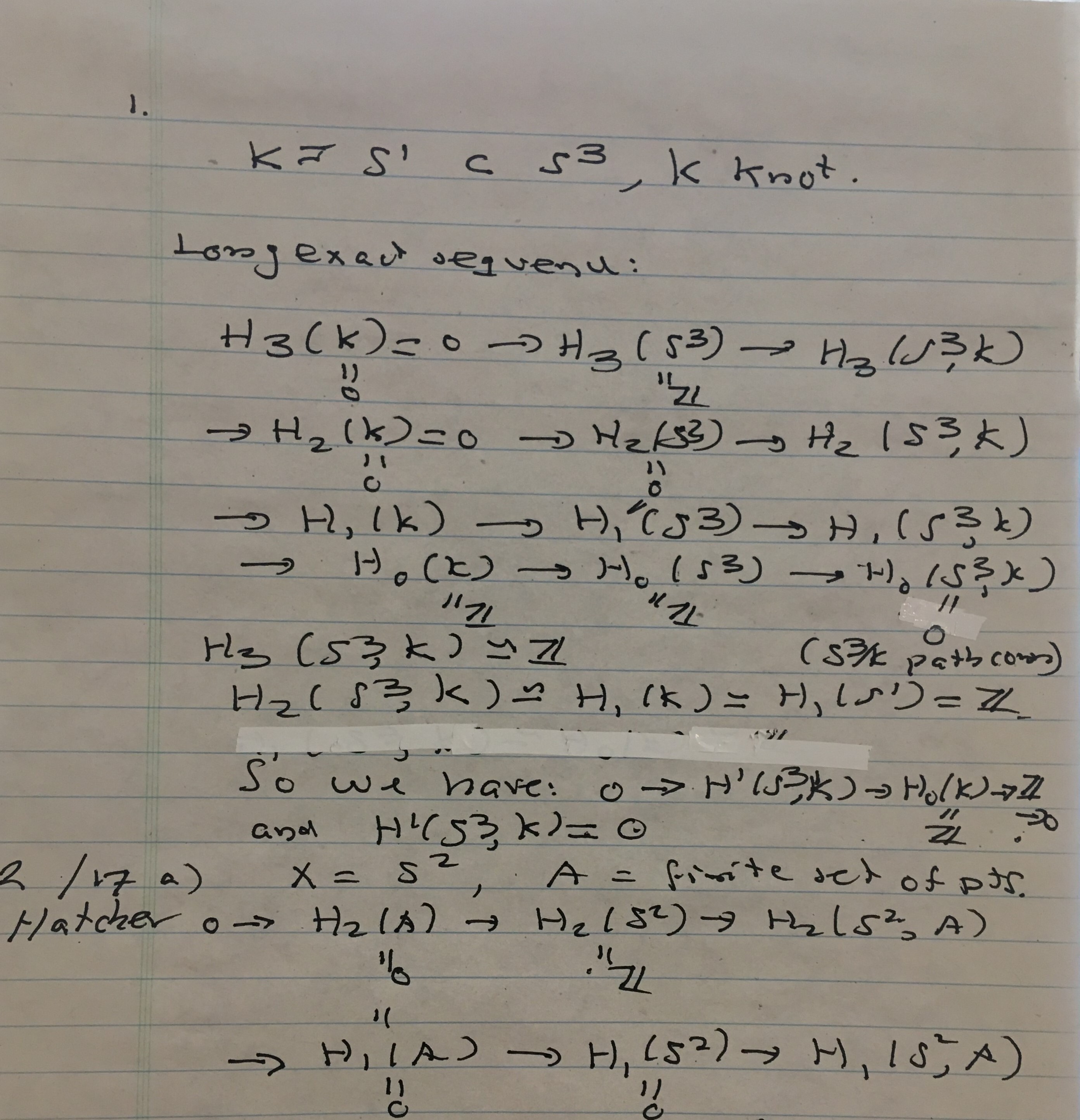 Question 1: A knot is an embedding of S1 in S3. Let K be the image ...