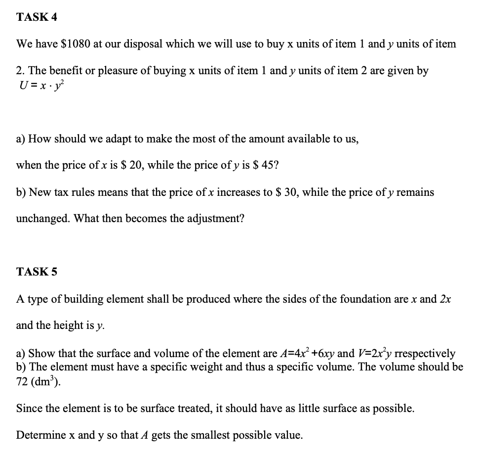 TASK 4 We have $1080 at our disposal which we will use to buy x un...