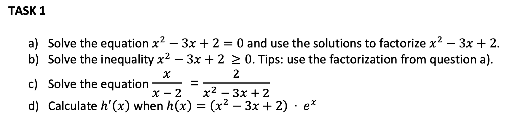 TASK 1 Solve the equation x^2-3x+2=0 and use the solutions to f...